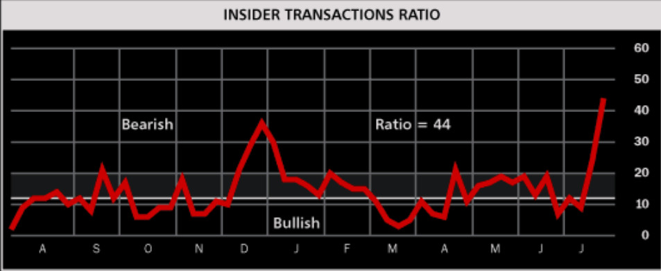 Auch beunruhigend ist, dass so genannte Insiderverkäufe stark zugenommen haben. Denn genau so wie die Unternehmensbosse und das obere Management während dem Crash massiv die Aktien ihrer Unternehmen gekauft hatten, so stossen sie diese nun in noch höherem Masse ab als kurz vor dem Crash: