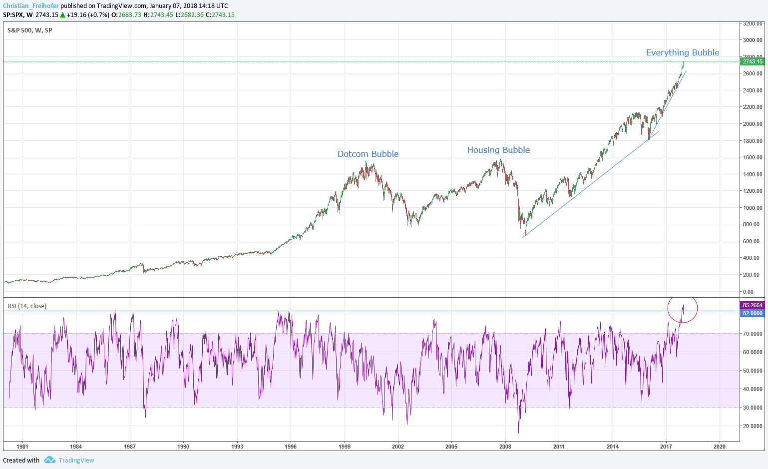 Das neue Börsenjahr hat begonnen, wie das Alte geendet hat: Aktien erklimmen weltweit immer neue Höchststände, die Volatilitäten sind auf dem absoluten Tiefpunkt, der Dollar schwächelt weiter und Rohstoffe wie Öl und Edelmetalle tendieren weiter nach oben. So weit, so gut also.