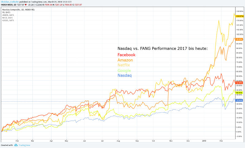 So legte der Nasdaq in dieser Zeitperiode um 34% zu während Google 42%, Facebook 53%, Amazon 100% und Netflix 125% rentierten. Besonders bei Amazon und Netflix ist nicht nur die Rendite bemerkenswert, sondern auch der Umstand, dass diese zwei Aktien letzte Woche bereits wieder neue Höchststände erreichen konnten.